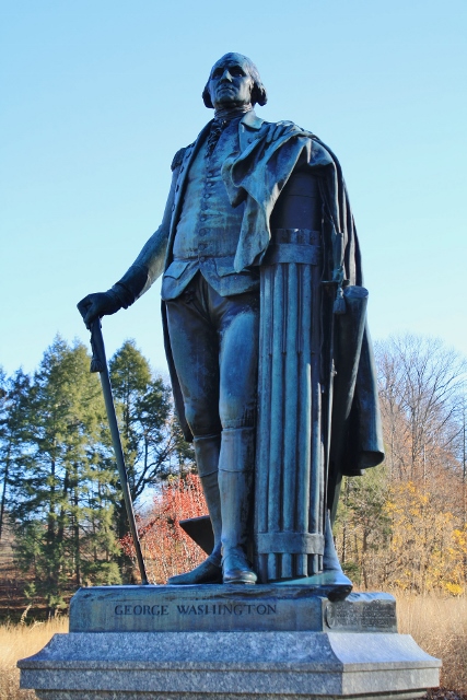 Odie and his family swung to the left at the bottom of the valley to continue on the HST to their home on the mountain. I swung right to return to Washington's HQ to explore more of the valley and to find the next trail up Mt. Joy. I stopped in at the replica train station to look at historic displays and met a Chinese family. The elderly man, carefully coming down the station's large set of stairs grinned at me then asked "You a walker? George a walker!" His daughter about my age, laughed and explained that they'd just visited the statue of George Washington and she'd translated the wayside sign for him that said Washington preferred his walking stick to his sword. I offered one of my poles to her father so that he could steady himself on the slow steps down. "Democracy means a lot to him," she said as she returned the pole and her dad made his way to the HQ building and a ranger program happening there. "We come here almost every month," she said, "I can't tell you how many times I've read these signs to him. He should know them by heart!"